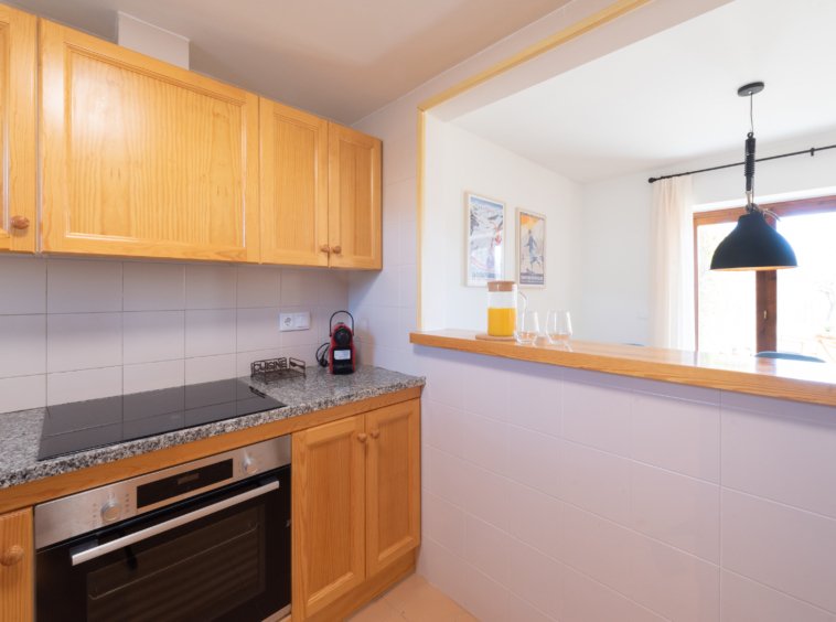 Cocina abierta totalmente equipada con electrodomésticos de alta gama.